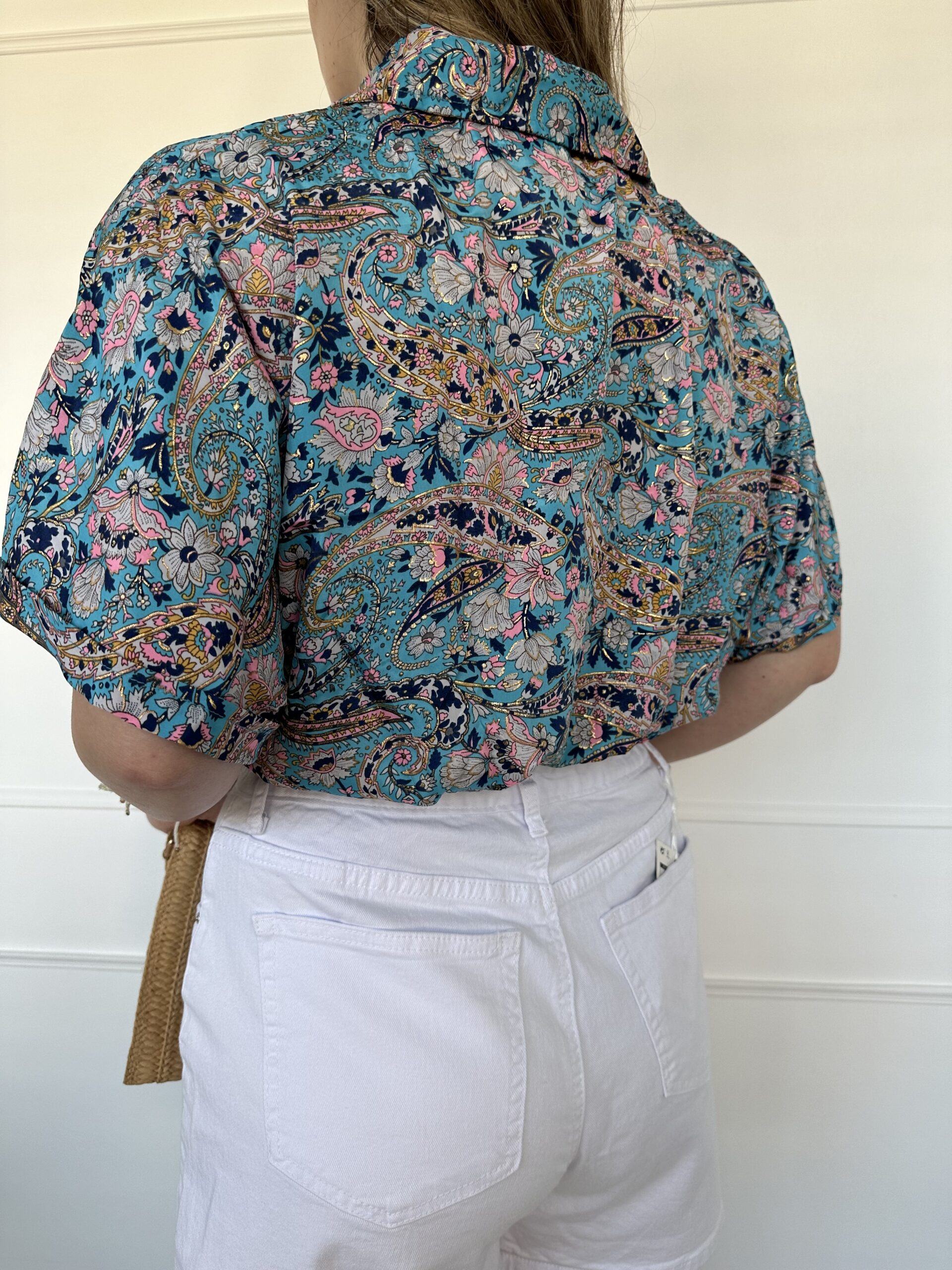 Πουκάμισο με σχέδιο λαχούρια, δέσιμο μπροστά, κουμπιά, λάστιχο στην μέση στην πίσω μεριά για να εφαρμόζει τέλεια. Το μανίκι είναι φαρδύ και έχει ρεβέρ.